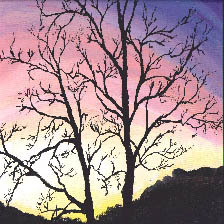 I painted this scene called "winter trees" the year after my husband, Cliff, died. These trees symbolized a breakthrough for me. Up until then I had always considered the cold and darkness of winter, like times of great pain, as a season merely to be endured. All of a sudden, I learned to appreciate the beauty of a stark winter tree against a sunset. I truly saw how a skeletal tree, in its own special way, is as lovely as a spring tree in its first bud, or a summer tree in full leaf, or a fall tree in radiant color.